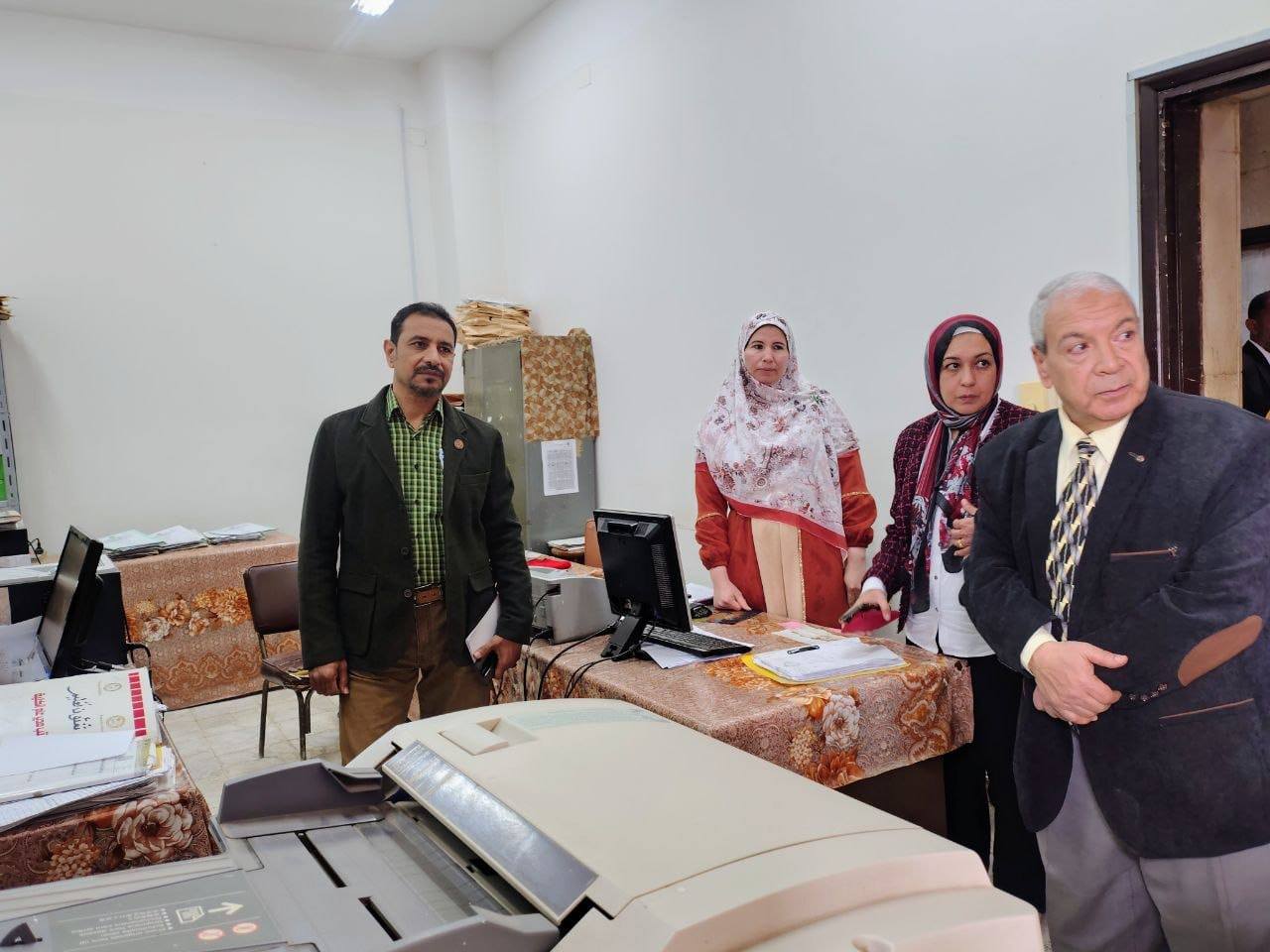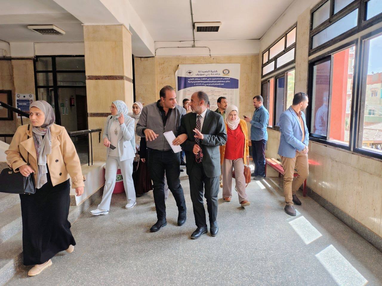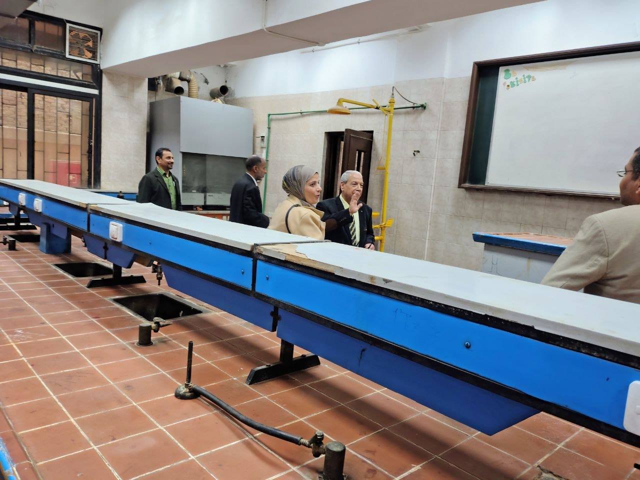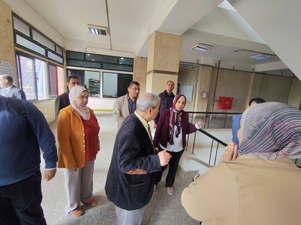 ٢) جولة تفقدية: شملت المعامل البحثية بالكلية ومعامل الطلاب، ومعرض مشروعات الطلاب، والمكاتب الإدارية، إلى جانب لقاء عدد من أعضاء هيئة التدريس.