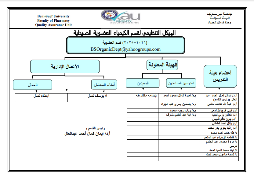 لعرض وتحميل الهيكل التنظيمي لقسم الكيمياء العضوية الصيدلية - اضغط هنا